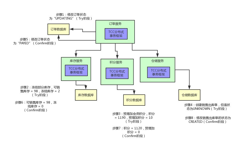下面我们来看看TCC事务是如何应用的。