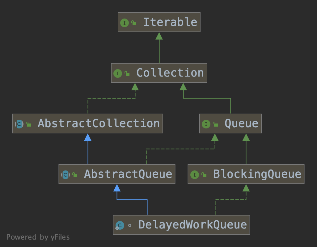对象被创建后,就会不断的从工作队列中取出任务执行,下面我们看下工作队列DelayedWorkQueue