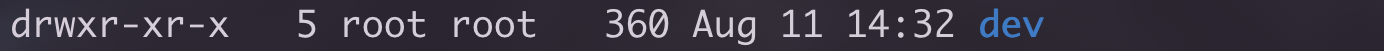 ,表示串行端口设备,比如键盘、鼠标等在这里dev是一个文件夹,因此首字母的值是d